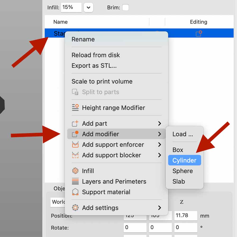 Basically, we have told PrusaSlicer to increase the infill density inside this cylinder to 80 percent. The rest of the object will have the lower global infill.